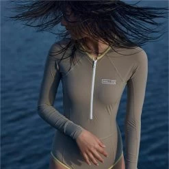 This longsleeve one-piece swimsuit ensures a secure fit even in the most challenging conditions and offers more warmth and protection than a regular swimsuit. Featuring an Italian outside fabric with UPF 50+ and an inside front lining that is soft to the skin and breathable. The versatility of this suit makes it perfect for long days spent in the water. Showcasing the limited edition Moon colour accented with a white zipper and logo, and yellow neck and leg binding.